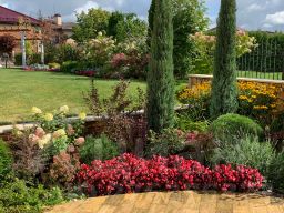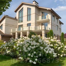 На участке 25 соток выполнен ландшафтный дизайн: проложены дорожки, проведено освещение, уложен газон, высажены крупномеры, кустарники и множество цветов, построен итальянский дворик с ротондой и высажено огромное количество роз! Также на участке построена беседка и садовый домик. Квартира для персонала (2 спальни и гостиная) имеет отдельный вход с улицы.