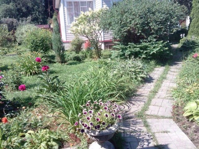 Участок - 5,6 соток. Здесь уже растут и радуют глаз: яблони, малина, виноград и море цветов. Для садовода - рай, для эстета - наслаждение.