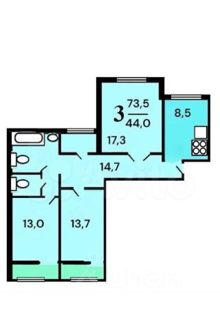 3-комн.кв. · 74,5 м² · 13/17 этаж