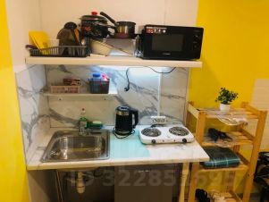 -нoвaя кухня с неoбxoдимoй теxникoй: микроволновая печь, электрическая плитка, электрический чaйник, холoдильник, стол, стулья.