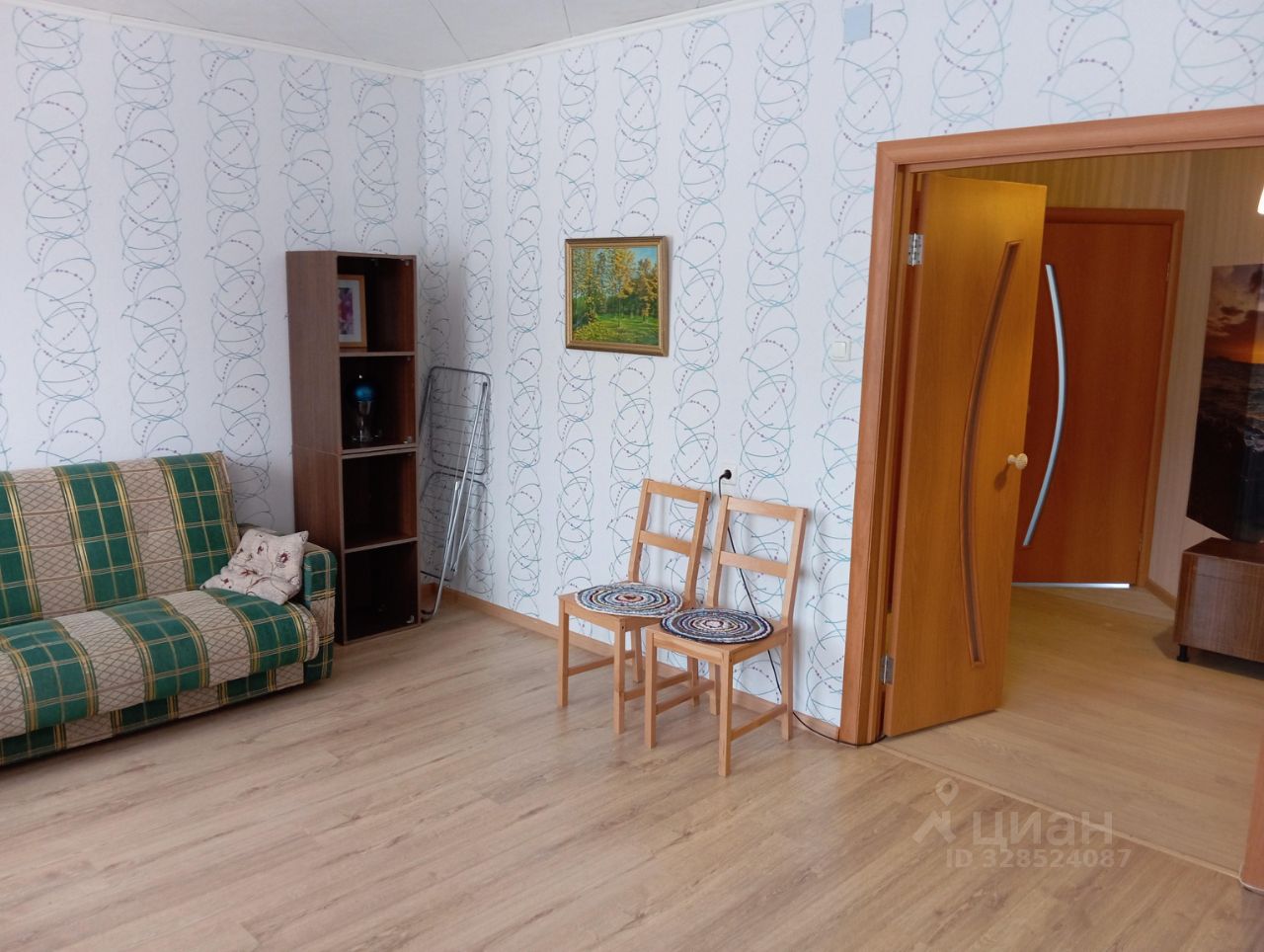 Квартира отделана в стиле эконом-евро, полы- ламинат в комнатах и прихожей, линолеум на кухне, плитка в свнузлах. Стены- обои.
