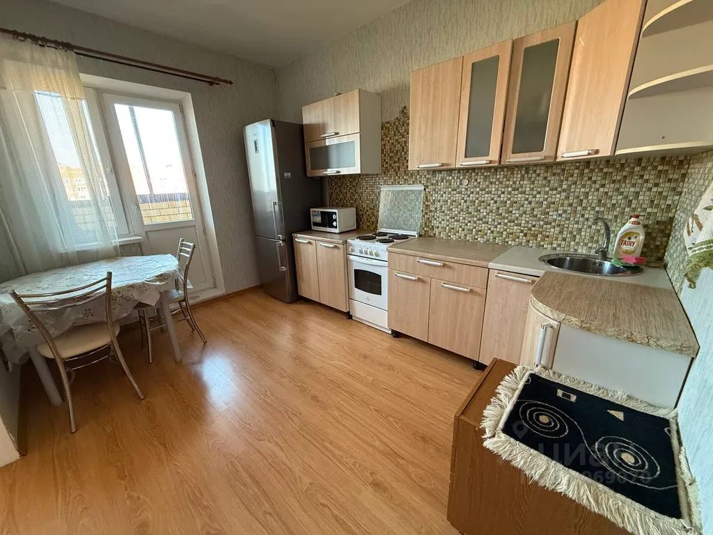 Квартира расположена в многоквартирном доме на 14 этаже. Окна выходят во двор. Развитая инфраструктура, супермаркет "да" находится в доме.