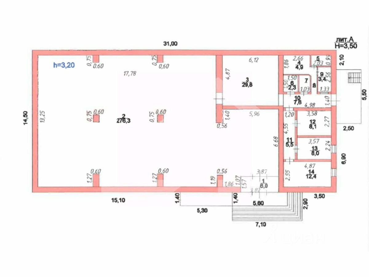 -высота потолков: 3.5 м.