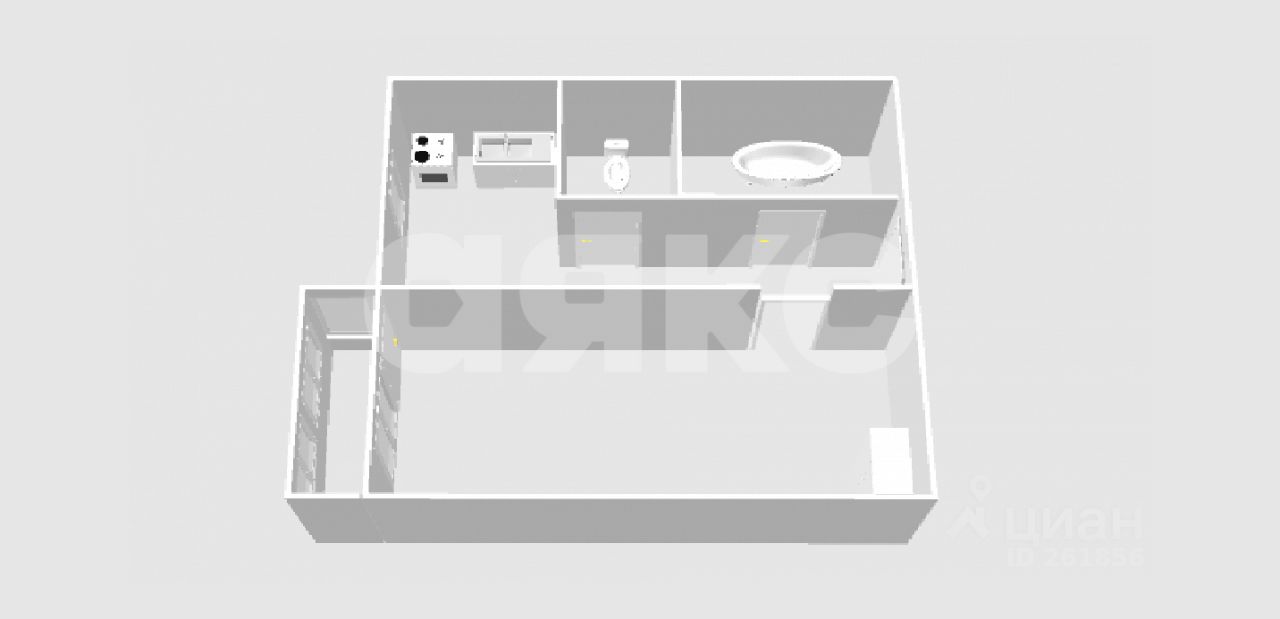 Кухня 9 м² — достаточно места для семейных обедов и уютной обеденной зоны. Комната просторная, возможна зонировка под спальню и рабочее место.