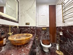 Эксклюзивные детали: Санузел, отделанный красивой плиткой, и уникальная раковина с вставкой из драгоценного камня подчеркивают статус жилья, а так же установлен бойлер, на время отключения горячей воды.
