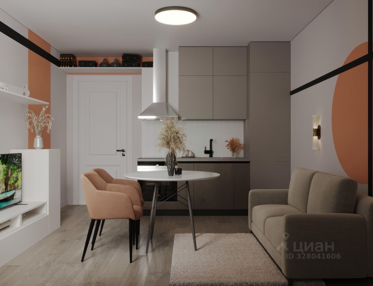 — Площадь: компактная, но функциональная планировка 35,3 м² позволяет грамотно организовать зону отдыха, рабочую зону и место для хранения.