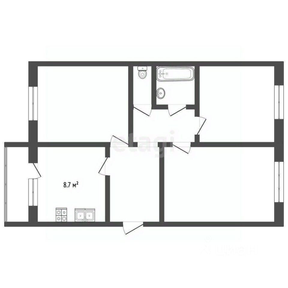 Квартира с изолированными комнатами и раздельным санузлом — удобно и практично. Планировка простая и понятная.