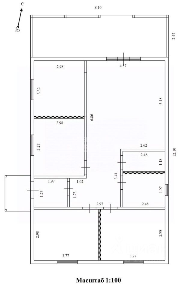 Три большие изолированные комнаты с видом в сад и входную группу.