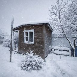 Бытовка на участке для хранения инвентаря.