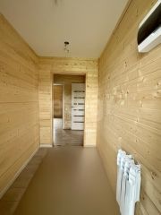 Дом построен на ж/б свайном фундаменте по каркасной технологии. Утепление дома зимнее, все коммуникации заведены и разведены по дому. Канализация септик, вода из собственной скважины, электричество 15 кВт. Наружная отделка дома клинкерная плитка, внутренняя отделка имитация бруса. Потолки в доме натяжные, на полу ламинат. Все розетки и выключатели установлены и подключены, отопление - электрокотел, батареи разведены.