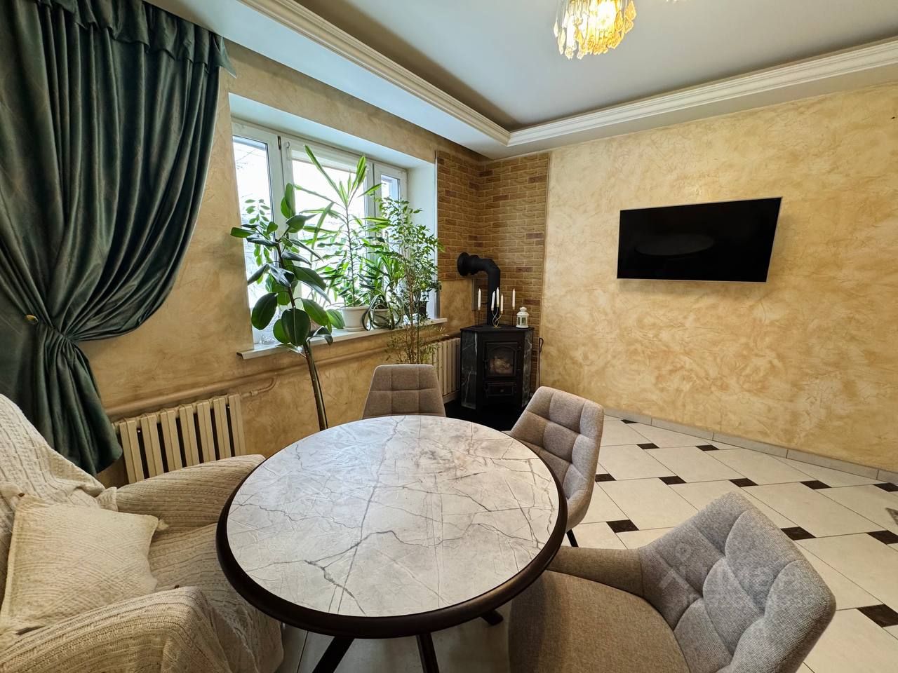 В доме 4 комнаты и 1 гардеробная. Есть печь-камин. Теплые полы, ламинат, плитка. Стены в 4 кирпича!